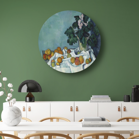 Stilleven met appels en een pot sleutelbloemen - Paul Cézanne forex muurcirkel