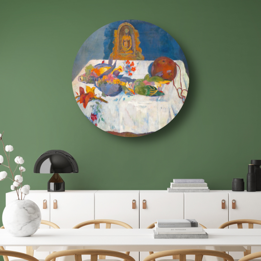 Bloemen en een fruitschaal op tafel - Paul Gauguin forex muurcirkel