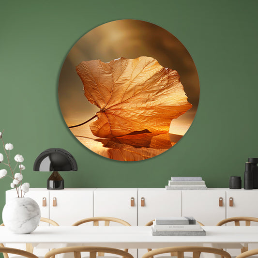 Gouden herfstblad met reflectie op water forex muurcirkel