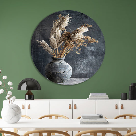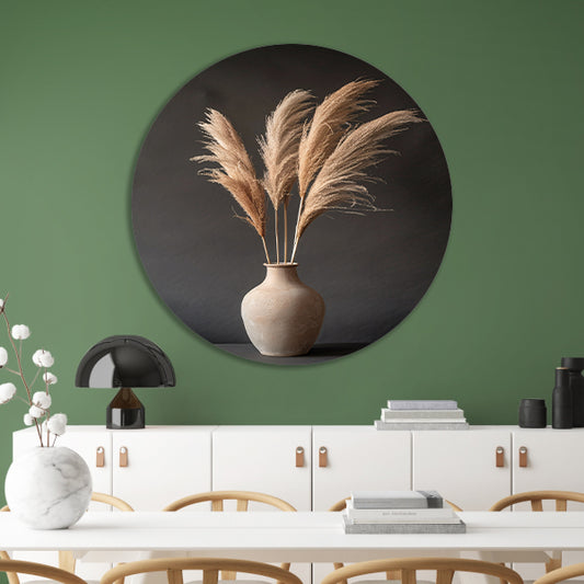 Stijlvolle vaas met beige pampasgras op donkere achtergrond forex muurcirkel