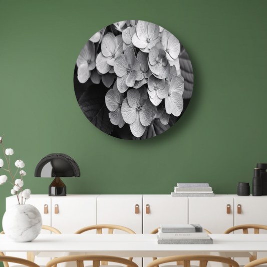 Hydrangea in Zwart-Wit forex muurcirkel