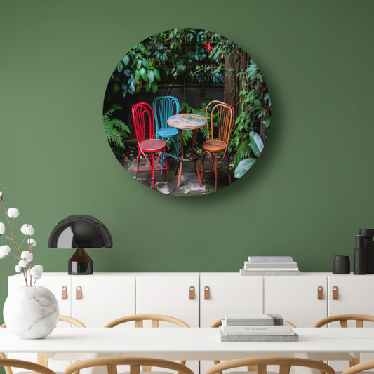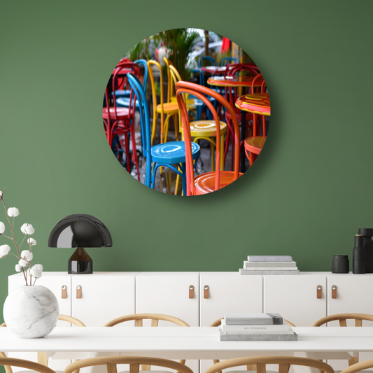 Minimalistische Eetkamer met Stoelen van Mondriaan forex muurcirkel