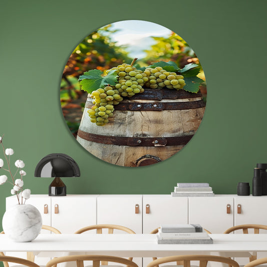Rustiek Houten Vat met Groene Druiven in Wijngaard forex muurcirkel
