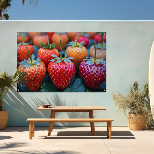 Rijpe Aardbeien op Houten Tafelblad tuinposter