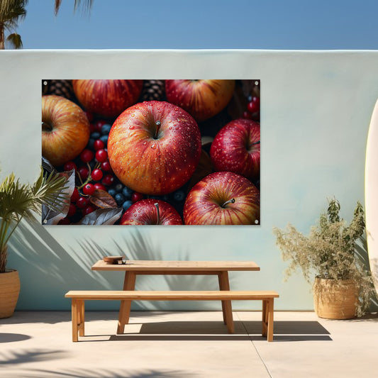Frisse Appels met Waterdruppels op Hout tuinposter