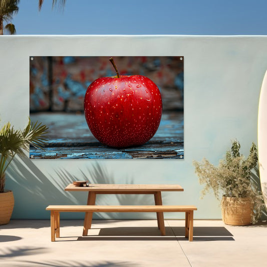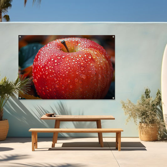 Rode Appel Bedekt met Dauwdruppels tuinposter