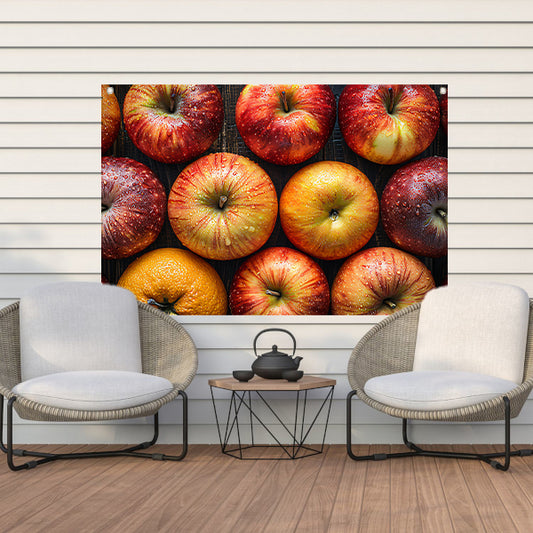 Kleurrijke ochtenddauw op verse appels tuinposter