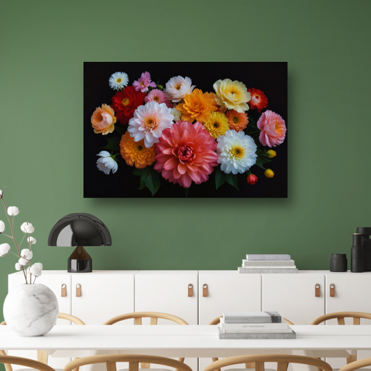 Weelderige bloemenpracht tegen donkere achtergrond acrylglas