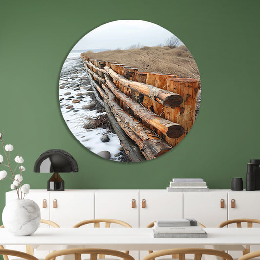 Houten Hart op Verlaten Strand aluminium muurcirkel