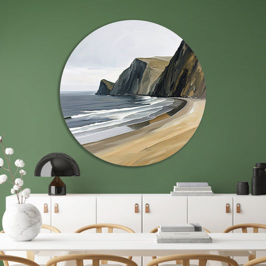 Serene kliffen aan rustige kustlijn forex muurcirkel