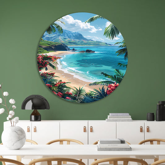 Ontdek onze collectie strand muurcirkels bij De Muurdecoratie! Deze ronde wanddecoraties brengen de ontspannen sfeer van het strand naar je tuin, balkon of terras. Met prachtige afbeeldingen van wuivende palmbomen, azuurblauwe zeeën, gouden zandstranden of romantische zonsondergangen creëer je moeiteloos een vakantiegevoel thuis. Perfect voor wie houdt van een frisse, kustachtige vibe!