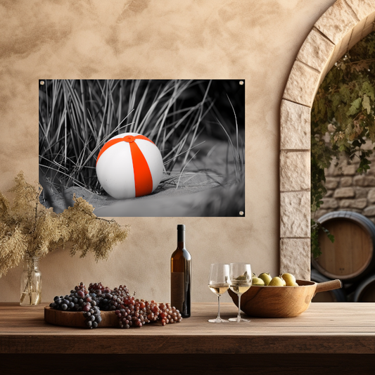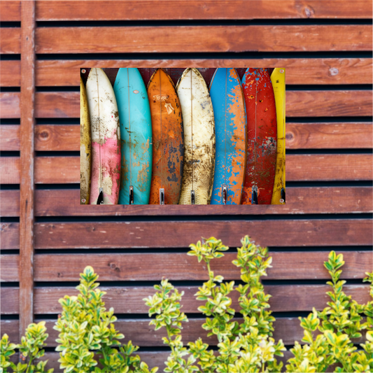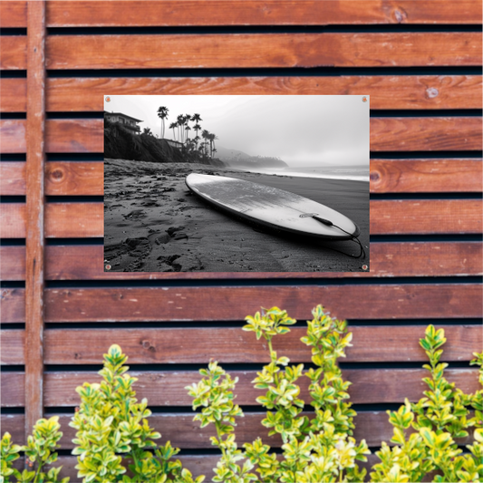 Sepia Surfplanken en Palmbladeren Collage tuinposter