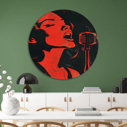 Expressieve rode zangeres met microfoon forex muurcirkel