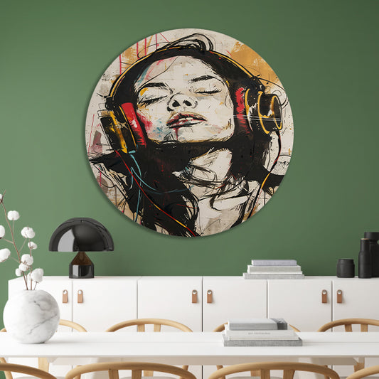 Portret met koptelefoon in dynamische kleuren forex muurcirkel