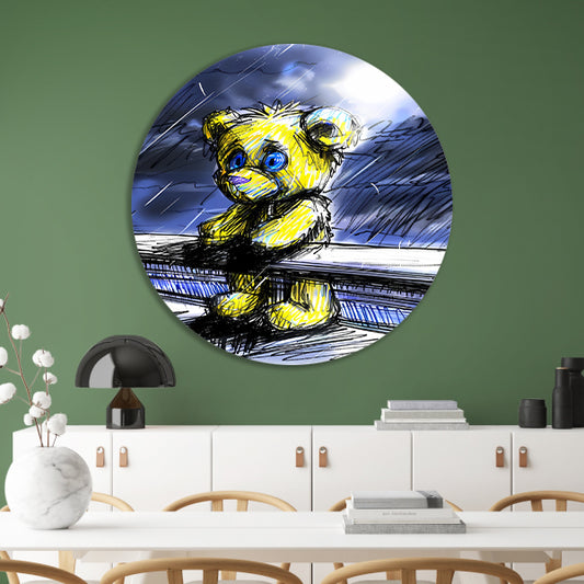 Eenzame gele teddybeer in de regen forex muurcirkel