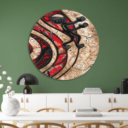 Rode Draaikolk met Zwarte Astronaut Figuur forex muurcirkel