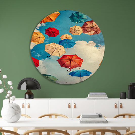Kleurrijke Paraplu's in de Lucht forex muurcirkel