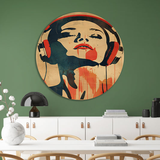 Vrouw met koptelefoon in vintage stijl forex muurcirkel