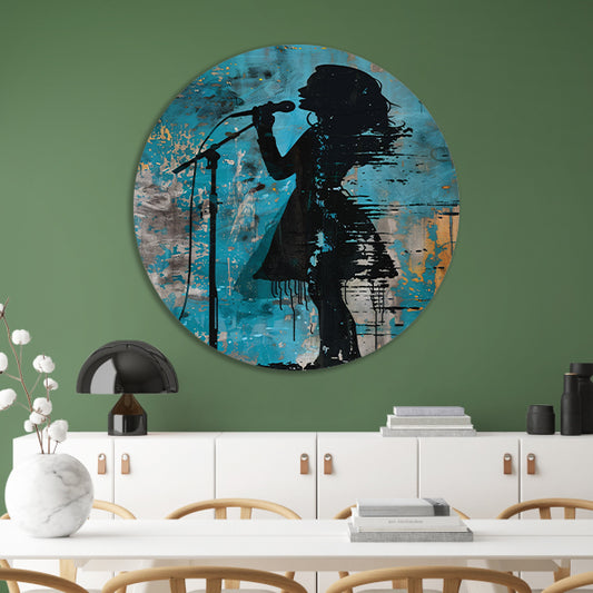 Modern Silhouet van een Zangeres op Podium forex muurcirkel