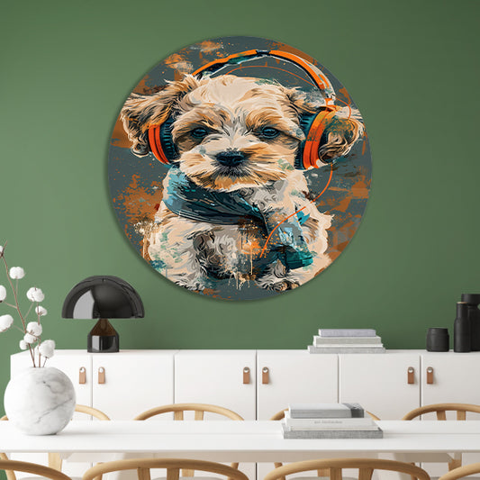 Portret van een Hond met Koptelefoon forex muurcirkel