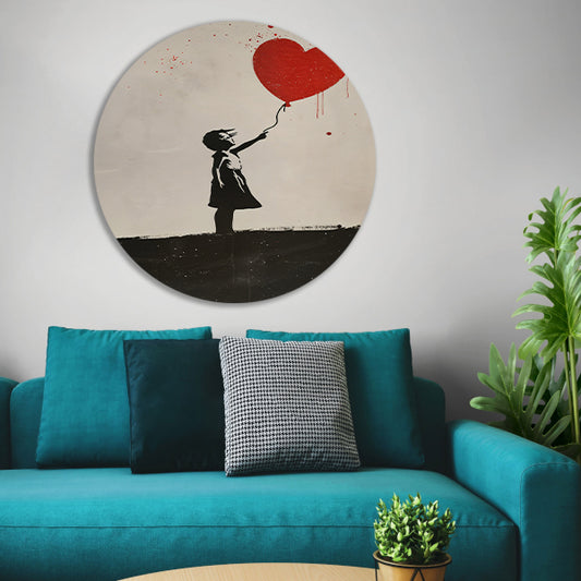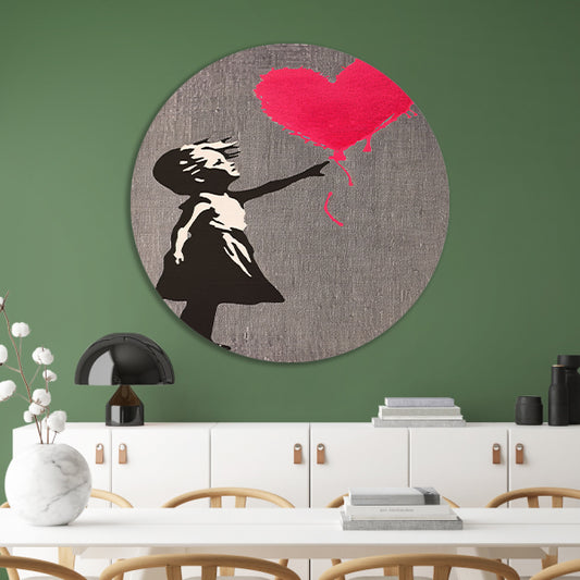 Meisje met Hartvormige Rode Ballon forex muurcirkel