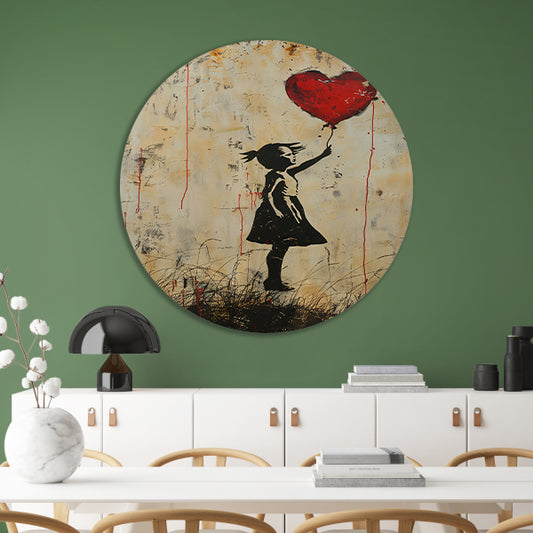 Monochrome luchtballon graffiti op verweerde muur forex muurcirkel