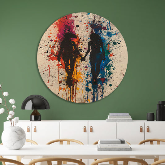 Twee figuren dansend in een explosie van kleuren forex muurcirkel