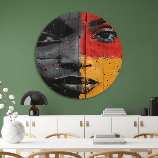 Gesplitst Gezicht met Kleurrijk Verfspetters forex muurcirkel