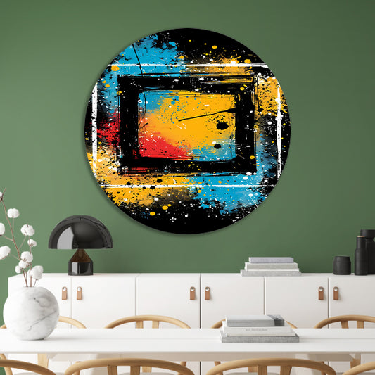 Abstract kleurrijk schilderij met dynamische lijnen aluminium muurcirkel