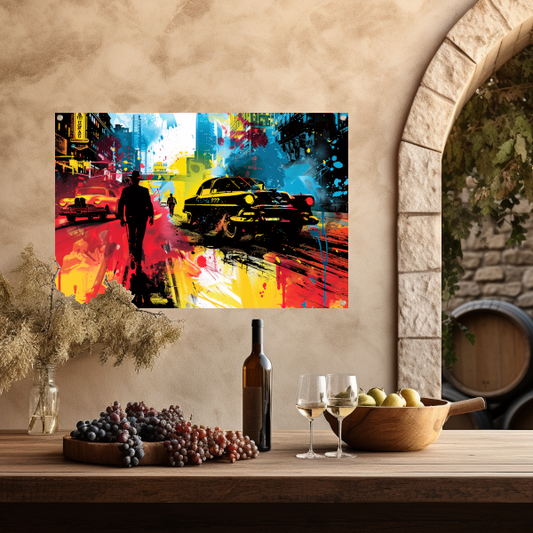 Geheimzinnige Maffiafiguren met Kleurrijke Achtergrond tuinposter