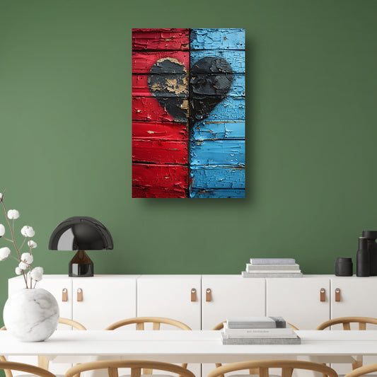 Gebroken Hart Graffiti op Rood Blauwe Houten Muur poster