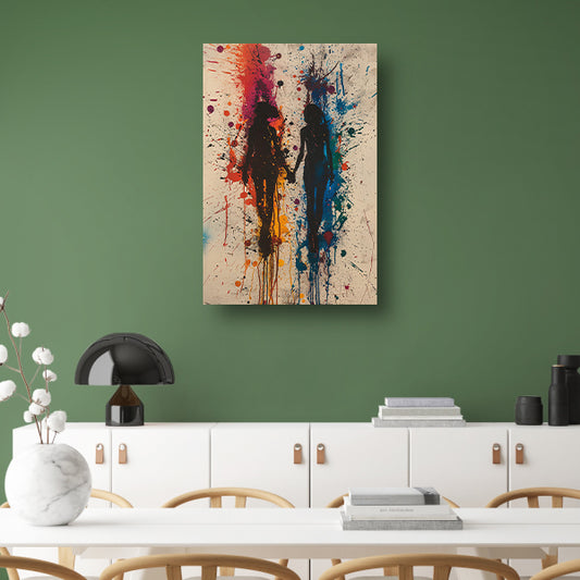Twee figuren dansend in een explosie van kleuren poster