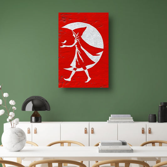 Vrouw in Rode Mantel Wandelt Onder Maan canvas