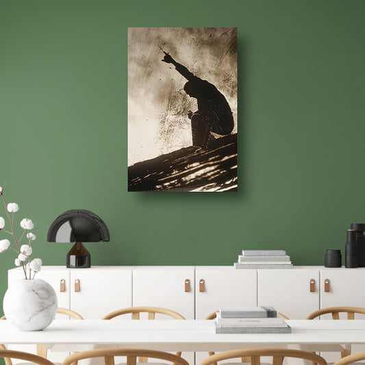 Schaduw van een persoon met opgeheven vingers canvas