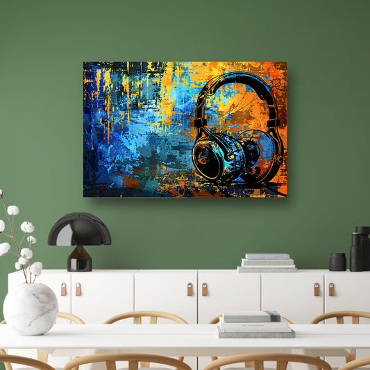 Kleurrijke koptelefoon met abstracte achtergrond canvas