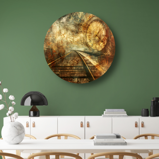 Surrealistisch landschap met spoor aluminium muurcirkel