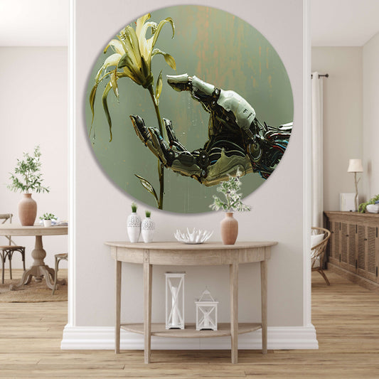 Robotische hand houdt delicate bloem vast forex muurcirkel