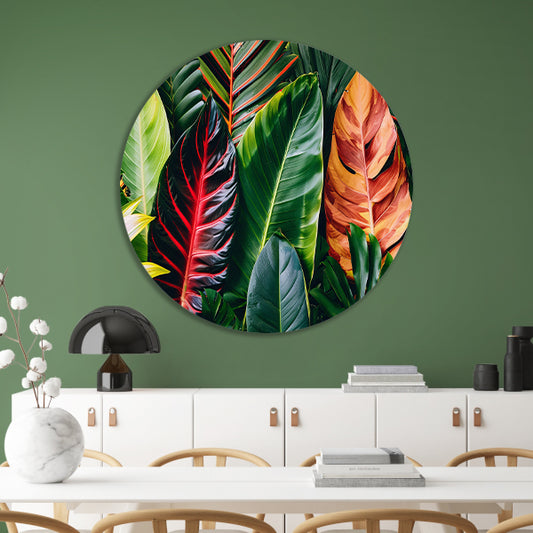 Levendige groene bladeren met kleurrijke accenten forex muurcirkel