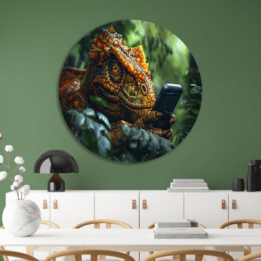 Dinosaurus met smartphone in het bos forex muurcirkel