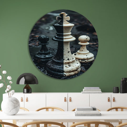 Schaakstukken in een Boslandschap aluminium muurcirkel