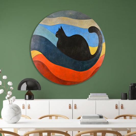 Zwarte kat met kleurrijke golvende achtergrond forex muurcirkel