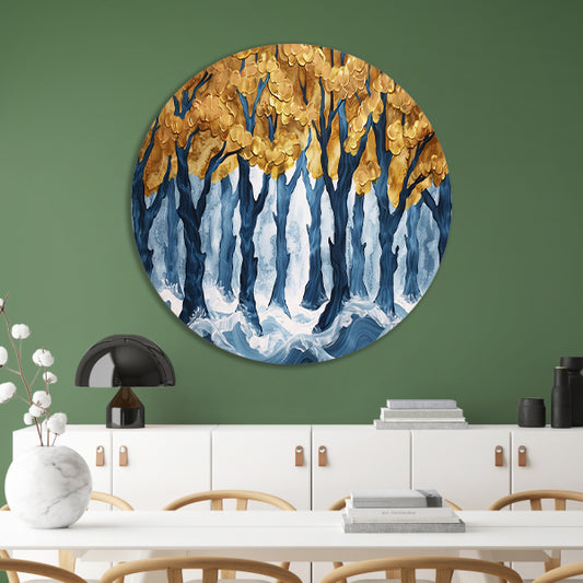 Surrealistisch bos met gouden bomen en water forex muurcirkel
