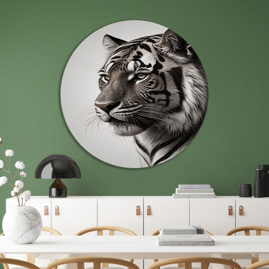 Majestueuze Tijger in Zwart-Wit aluminium muurcirkel