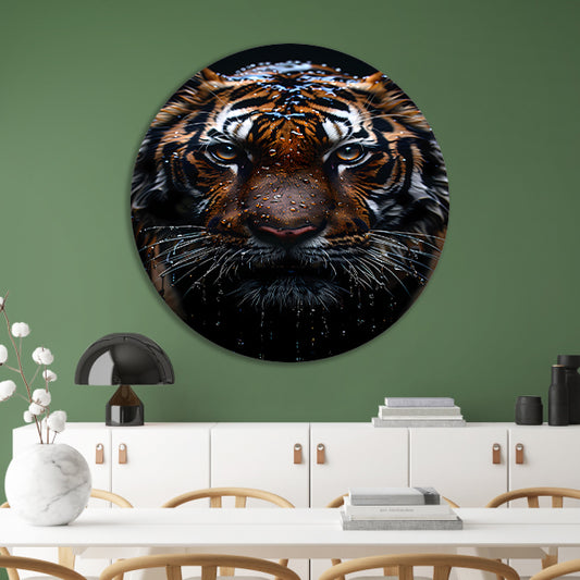 HyperRealistisch Tijger in de Regen forex muurcirkel