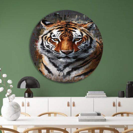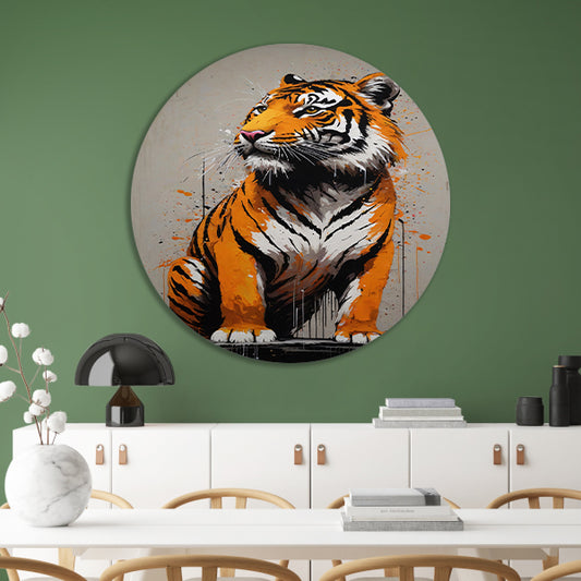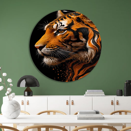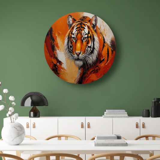 Oranjerood Schilderij van een Majestueuze Tijger forex muurcirkel