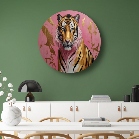 Tijger in Goud en Roze Modern Kunstwerk forex muurcirkel
