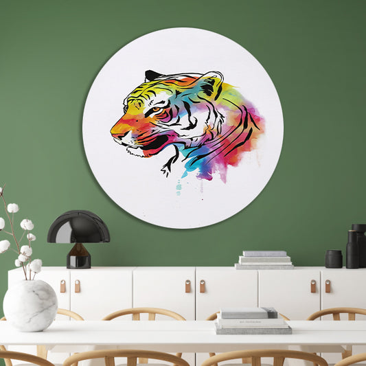 Kleurrijk Portret van een Tijger in Abstracte Stijl forex muurcirkel