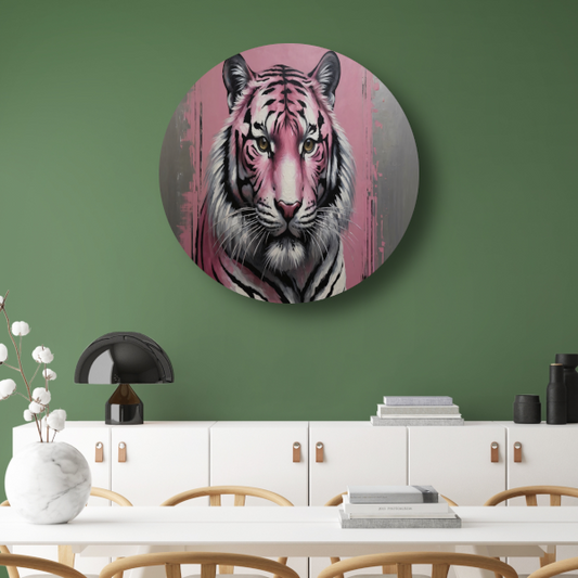 Abstract Roze en Zilver Tijger Schilderij forex muurcirkel