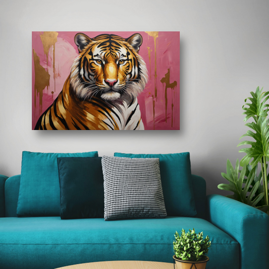 Tijger in Goud en Roze Modern Kunstwerk poster
