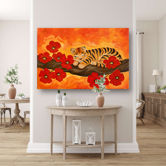 Je kunt kiezen uit canvas, plexiglas of poster. Canvas voelt warm en ambachtelijk. Plexiglas geeft een heldere, moderne glans die details extra laat spreken. Posters zijn licht, overzichtelijk en elegant toegankelijk. Elk materiaal laat de streken en kleuren van de tijger levendig tot hun recht komen. Met deze collectie kies je geen cliché roofdier, maar een bron van kracht en schoonheid die stil en karaktervol je muur siert.